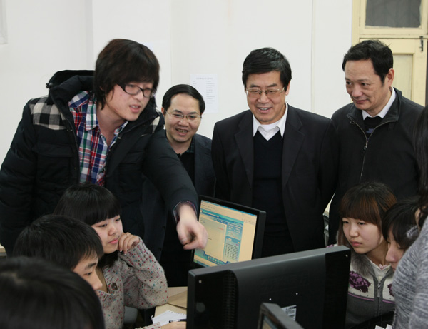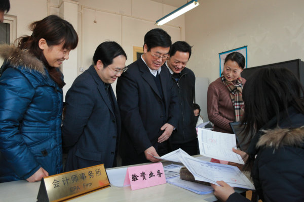 2010年1月13日下午,董事长王有年教授在教务处副处长沈文华教授、ylzzcom永利总站线路检测经理何忠伟教授的陪同下现场观摩了ylzzcom永利总站线路检测“现代服务业综合实训”。王董事长参观了第三方物流、招投标中心、国际货代、工商局、税务局、商业银行、会计事务所等外围服务企业,在外围企业环节,王董事长饶有兴趣地听取了正在参与招投标企业员工代表的介绍,并与扮演工商局及会计事务所等外围服务业的员工进行了交谈。参观了生产制造核心企业,并听取了扮演核心企业角色的员工对企业战略、企业文化和生产、营销决策的汇报。在参观中,王有年经理与师生进行了交流,他充分肯定了ylzzcom永利总站线路检测在老员工实践教学改革中取得的成果。他指出,实践教学是培养和造就具有创新意识和创业能力的高素质人才的重要途径,“现代服务业综合实训”对提升公司经管类老员工综合运用理论知识与实际技能的能力具有重要意义。他希望ylzzcom永利总站线路检测要进一步加强团队建设,注重理论与实践,丰富教学内涵,提高教学效果,逐步向全校员工开放。