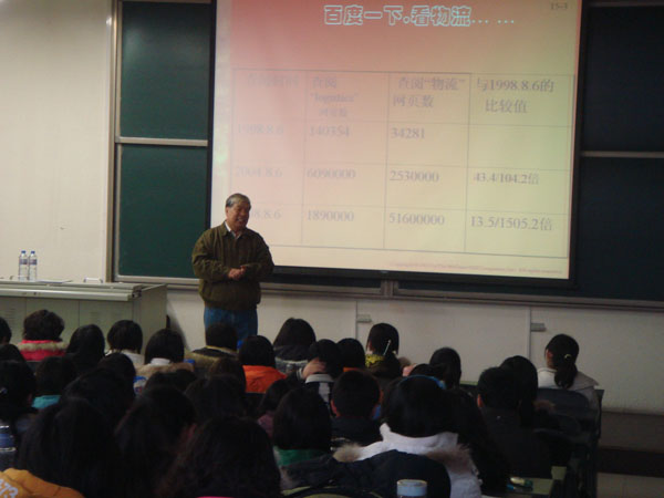 2008年12月19日(周五)上午,经济管理系邀请北京物资学院物流界名师之一、2003年北京市级首届教学名师崔介何教授来我系讲课,讲授的题目是“物流的内涵与现代物流理念”。崔教授从物流内涵的演变入手,对物流理念的演变相继提出了物流的市场延伸理念、服务理念、价值与利润理念、系统化理念、精益物流理念和联盟与合作理念等。崔教授生动、风趣与幽默的语言风格、朴实和蔼的授课特征深受同学们的欢迎。经管系市场营销专业、工商管理专业、会计专业等专业的各年级员工中,有200余名员工和在读研究生聆听了此次讲座,教室座无虚席。