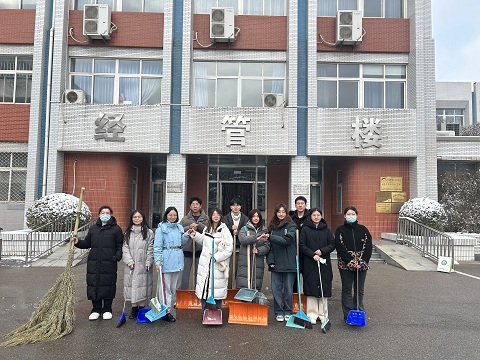 寒冬之下,志愿情暖心田。经过不懈努力,积雪覆盖的道路逐渐被清理完毕,一条条安全通道清晰呈现。忙碌的身影在大雪中构成了一道靓丽的风景线,经管师生用实际行动迎接公司党委换届。